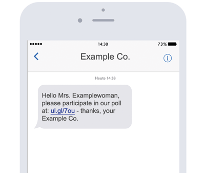 Links in your SMS will be replaced automatically with short links by our own URL shortener. An individual URL is created for each recipient of your campaign and for each link in the SMS.